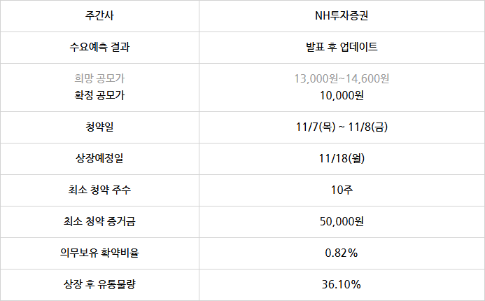 공모청약일은 11월 7일부터 11월 8일까지 진행되고,