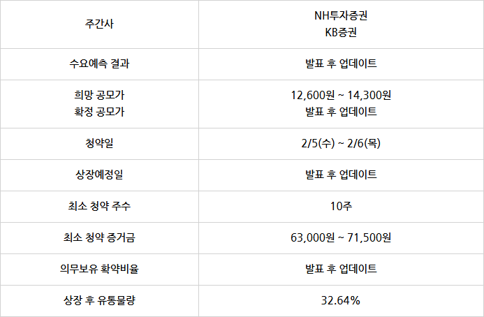 공모청약일은 2월 5일부터 2월 6일까지 진행되고,