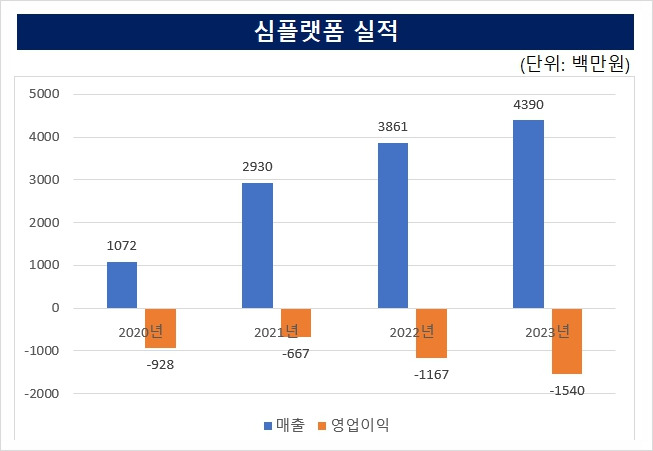 심플랫폼은 2023년 15억 4000만 원의 영업손실을 기록하며 이익을 확보하는 데는 어려움을 겪고 있습니다. 심플랫폼의 영업손실은 2020년 9억 2800만 원, 2021년 6억 6700만 원, 2022년 11억 6700만 원으로 꾸준히 이어지고 있습니다. 이 때문에 심플랫폼의 재무안정성 관련 지표는 개선이 필요한 상황입니다.