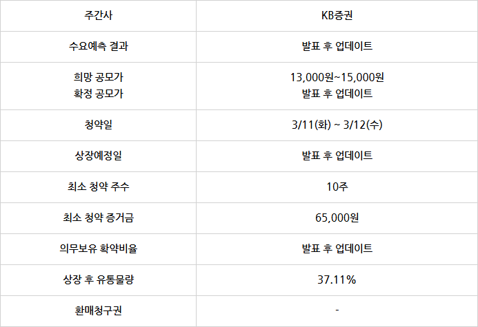 공모청약일은 3월 11일부터 3월 12일까지 진행되고,